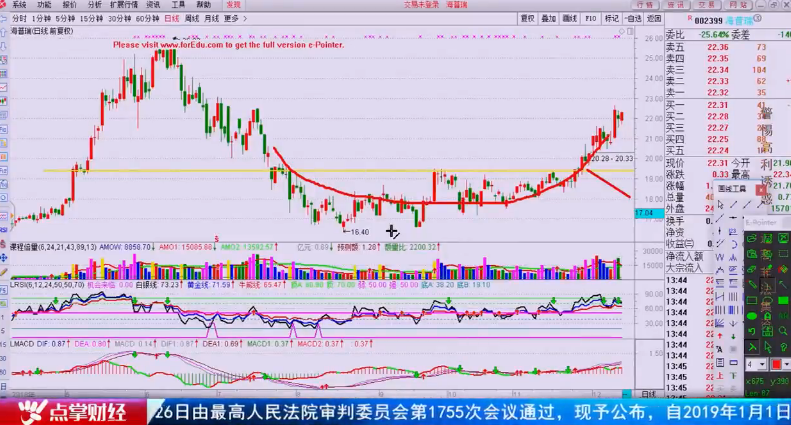谈到W底和圆弧底,林整华以海普瑞为例,是一个典型的圆弧底形态,在这个圆弧底的中间位置,出现过一个回踩颈线确认的动作,其实是一个很好的买点,当然现在就不适合追了。