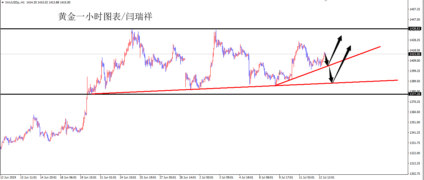 黄金1413-14区间多 防守5美金 目的地1425 1434-38
